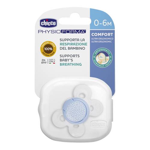 ChiccoPhysioforma comfort Descrizione Physioforma comfort 0-6m è il succhietto chicco che con la sua forma extra ergonomica lascia il giusto spazio e a mento e viso, facilitando il movimento della bocca. Con soli 4 punti di contatto, offre la massima dolcezza sul viso del bambino. Dotato dell'esclusiva finitura soft sense, il succhietto physioforma comfort 0-6m di chicco, assicura sulla pelle un tocco soffice e vellutato. La morbida tettarella è posizionata in modo agevolare la suzione del bambino lasciando ampio spazio per il movimento delle labbra. Il succhietto chicco physioforma comfort 0-6m favorisce lo sviluppo corretto della bocca...